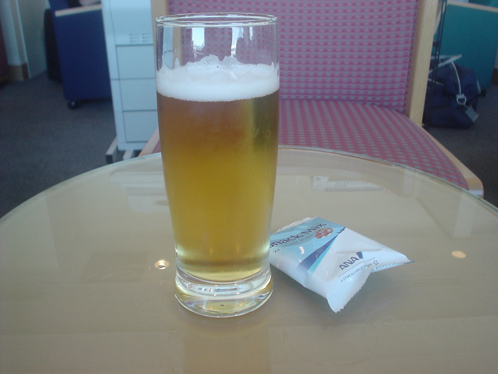 21日、那覇空港☆ANAラウンジで、一人カンパイ(笑)機内で良く寝れるように。。。